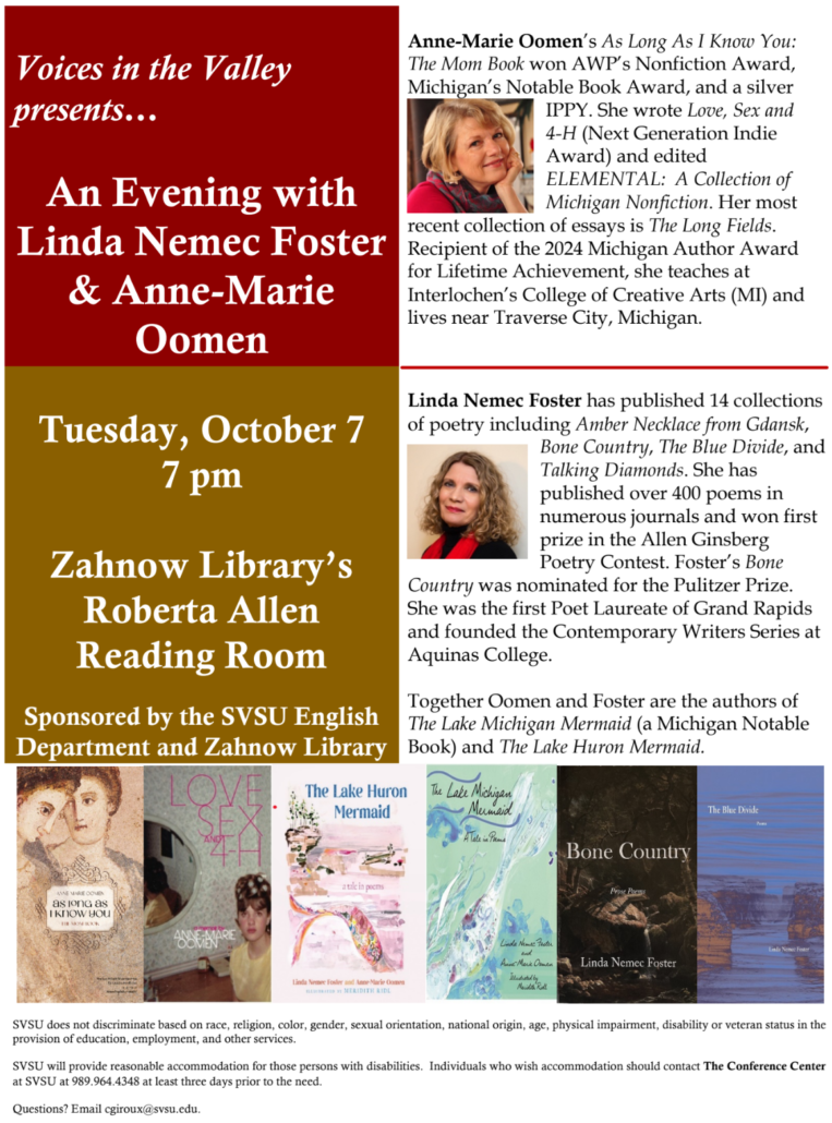 Linda Nemec Foster and Anne-Marie Oomen present at Saginaw Valley State University